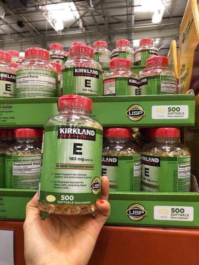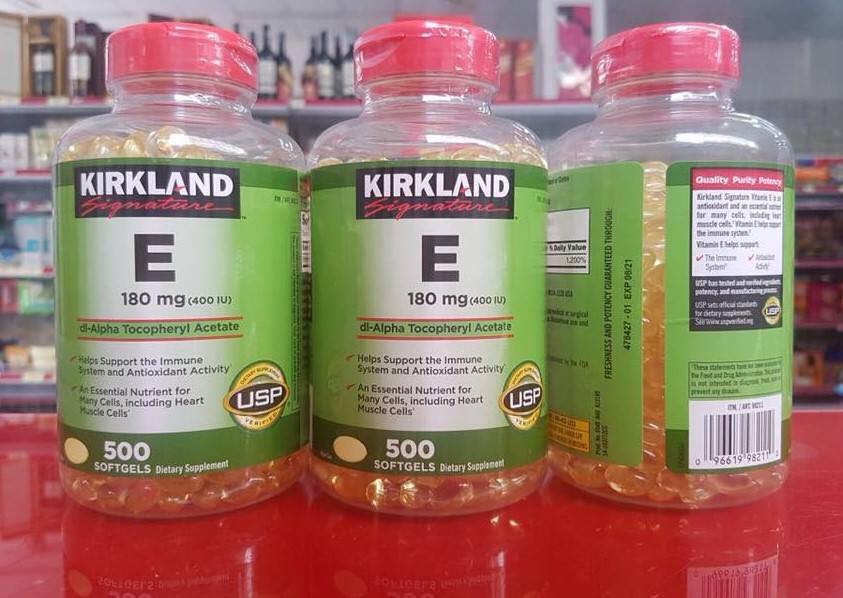Vitamin E Kirkland (Giá bán 480.000) Là viên bổ sung Vitamin E hiệu quả, hỗ trợ giúp đẹp da, chống lão hóa. Bạn có thể truy cập website để tham khảo thành phần, công dụng và liên hệ đặt mua.