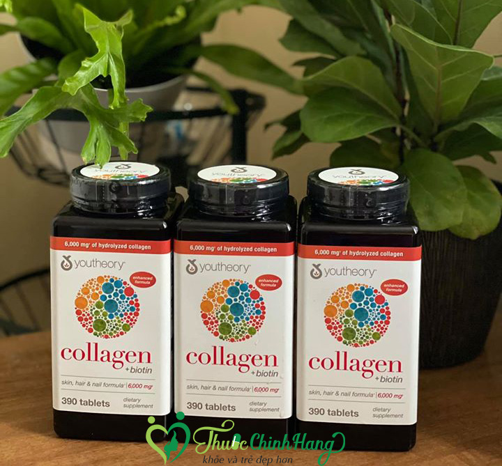 - Collagen Youtheory 390 viên chính hãng có chứa các hoạt chất sinh học có khả năng xuyên qua lớp biểu bì của da, bổ sung cả 3 loại collagen 1, 2, 3 giúp da giảm chảy xệ và giữ độ ẩm cho da, đồng thời kết nối và nuôi dưỡng các bộ phận xương, gân, tóc, cơ, sụn ở các khớp xương.